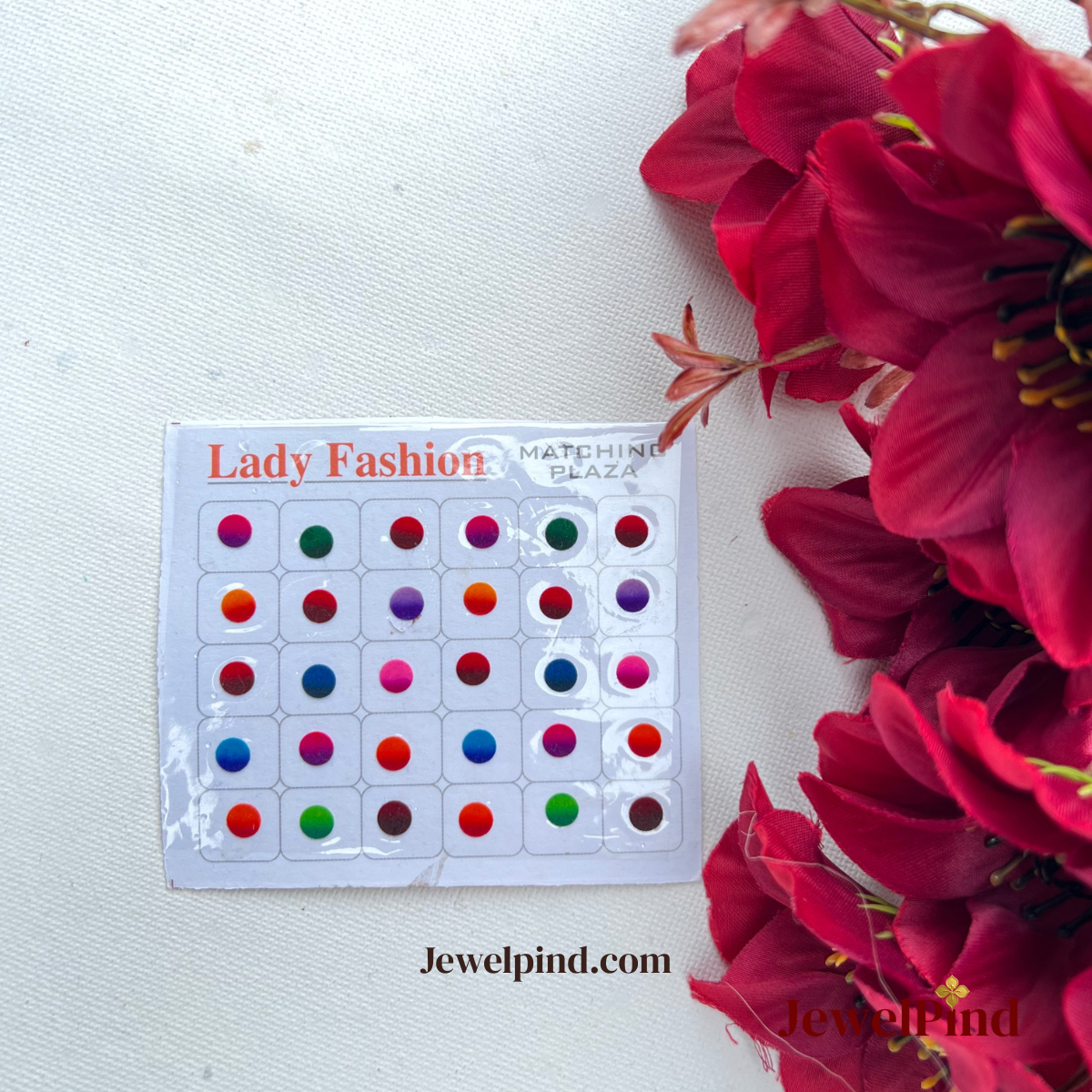 A subtle small bindi completes every ethnic look. But matching it with each outfit can be tricky. This kit includes a vibrant multi-color bindi sheet so you’re never out of options. Perfect for last-minute outfit changes or touch-ups.